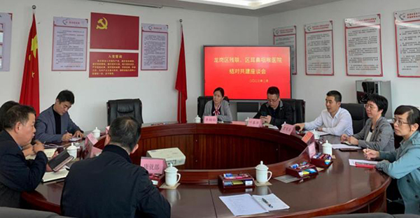 2月7日,龙岗区耳鼻咽喉医院党委书记、院长曾宪海一行到区残联开展结对共建及合作座谈活动,座谈会上,会院双方领导就如何发挥党建引领共建及各自优势,共同促进龙岗残疾预防、残疾人康复等工作,进行了深入的交流。并就建设视力、听力障碍残疾预防科普宣传阵地,残疾人专门协会专业顾问引入,深入开展党建结对共建及助残志愿服务达成共识。接下来,双方将进一步发挥部门、行业优势,共同推动龙岗区残疾人事业高质量全面发展。